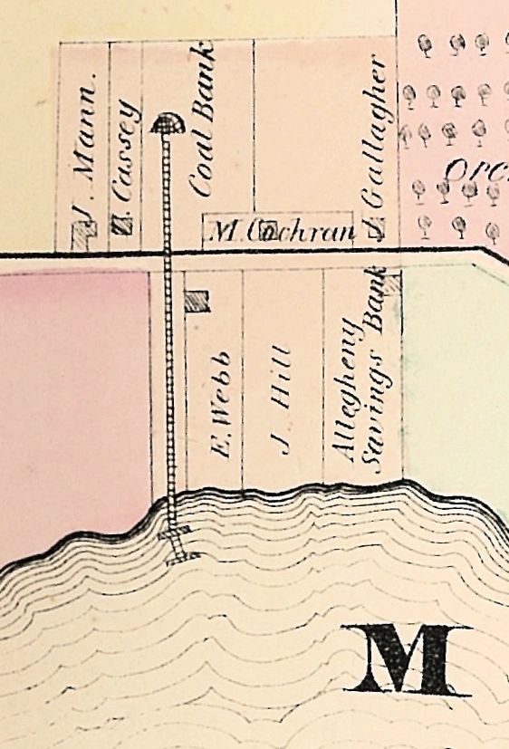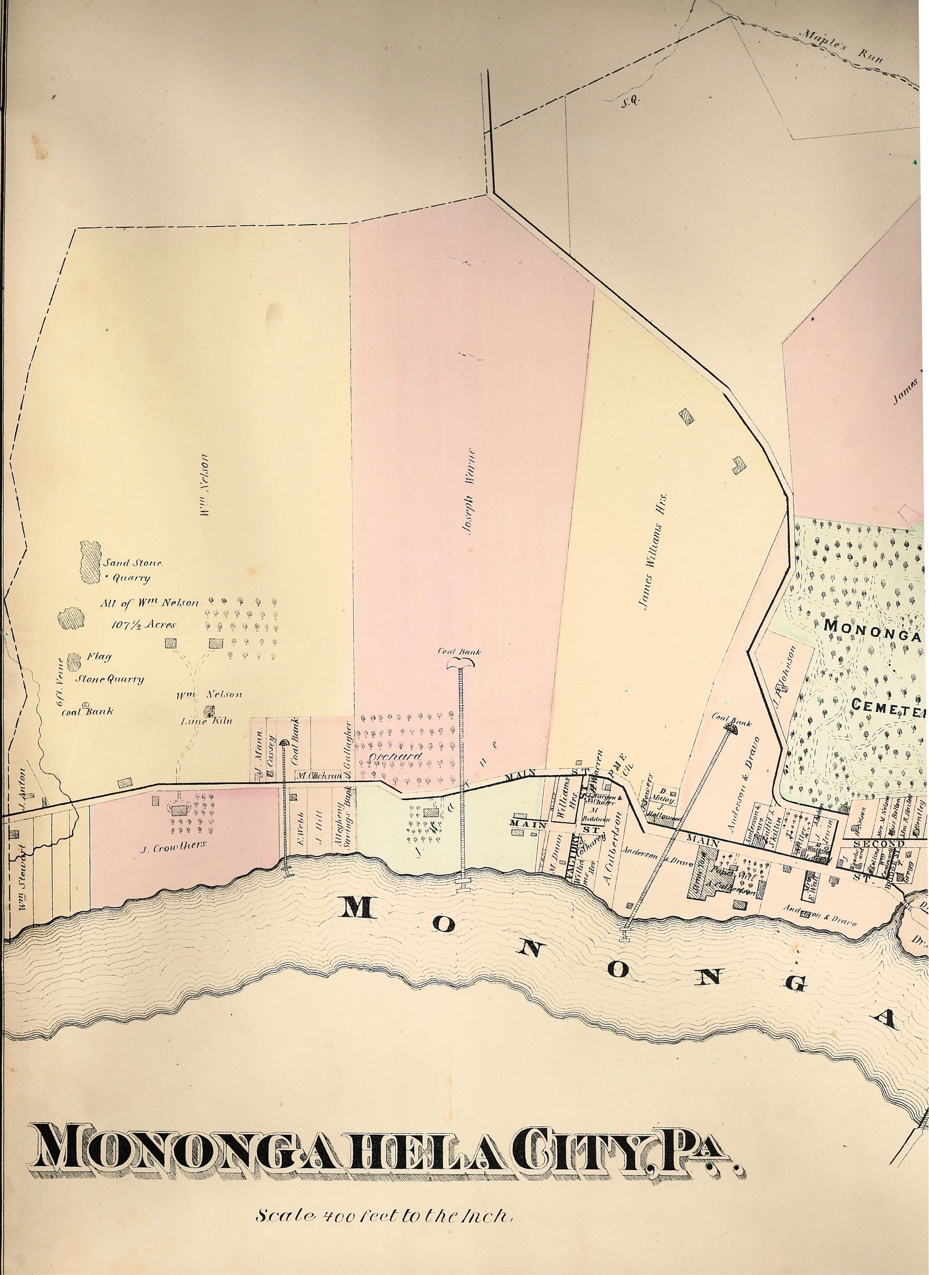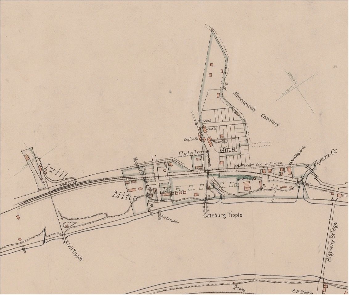 Monongahela map 1876 showing the Fort Pitt, Iville & Catsburg mines