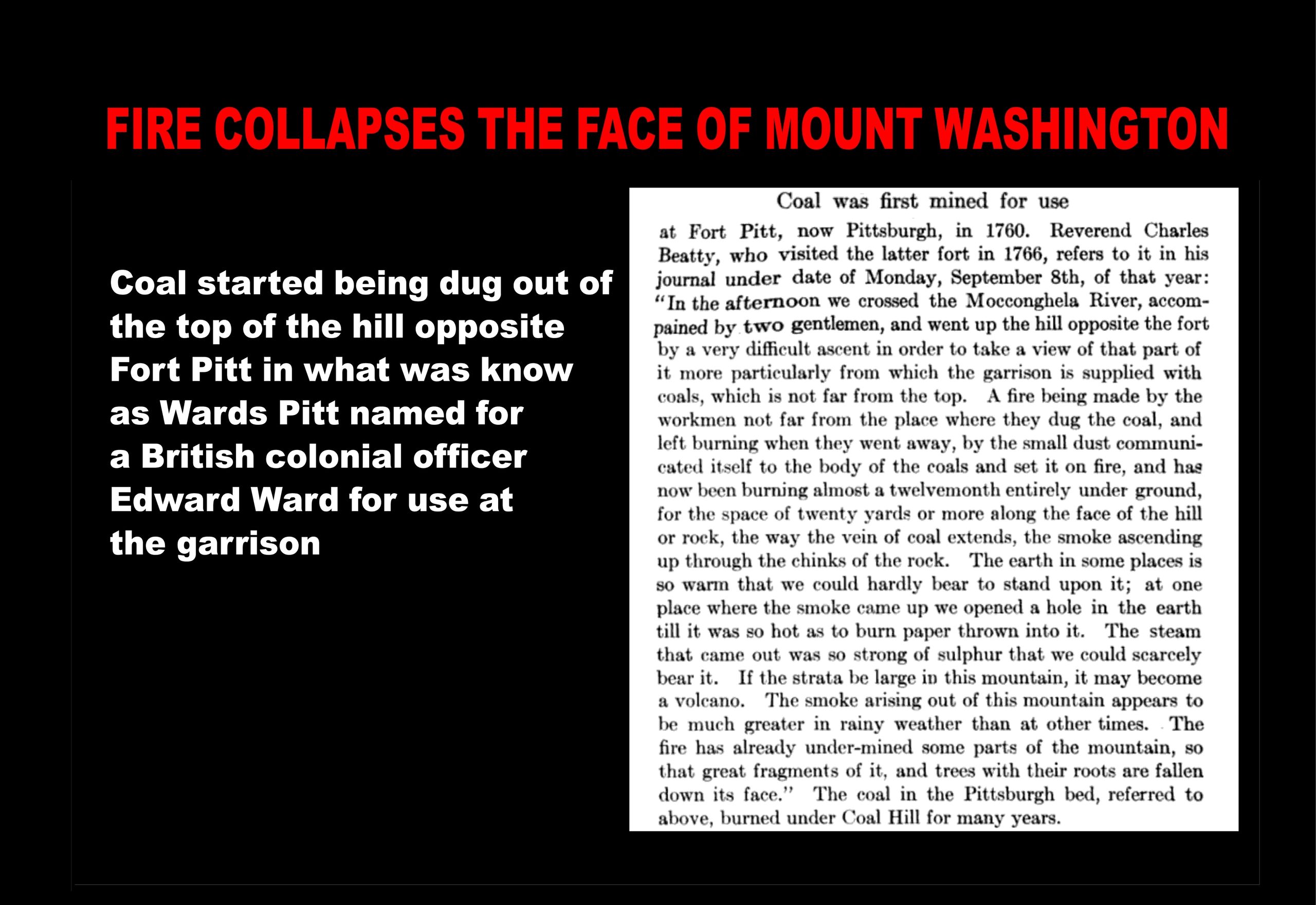 The catsburg mine caught fire in 1863 from a steam pump explosion and closed the mine.The mine was then moved several hundred yards down the street closer to the ivill mine.
